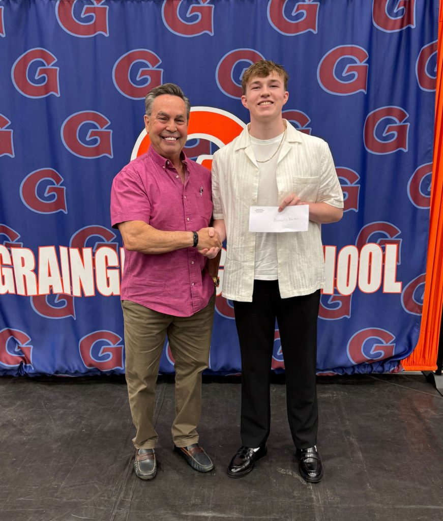 Felix Valdes, owner of Cherokee Lake Realty, presents a $1,000 Scholarship to Michael B. Denton of Grainger High School for writing the winning essay on “How Cherokee Lake has changed the Grainger County area, for better or worse.”